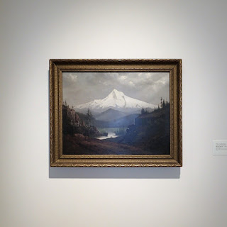Not having a lot of time, I did a quick run-through of the historical galleries to get a flavor. I noted that the local landscape and cultures were a common motif, as you might expect. Mount Hood is a particularly iconic favorite, seen here in an 1885 painting by William Samuel Parrott.